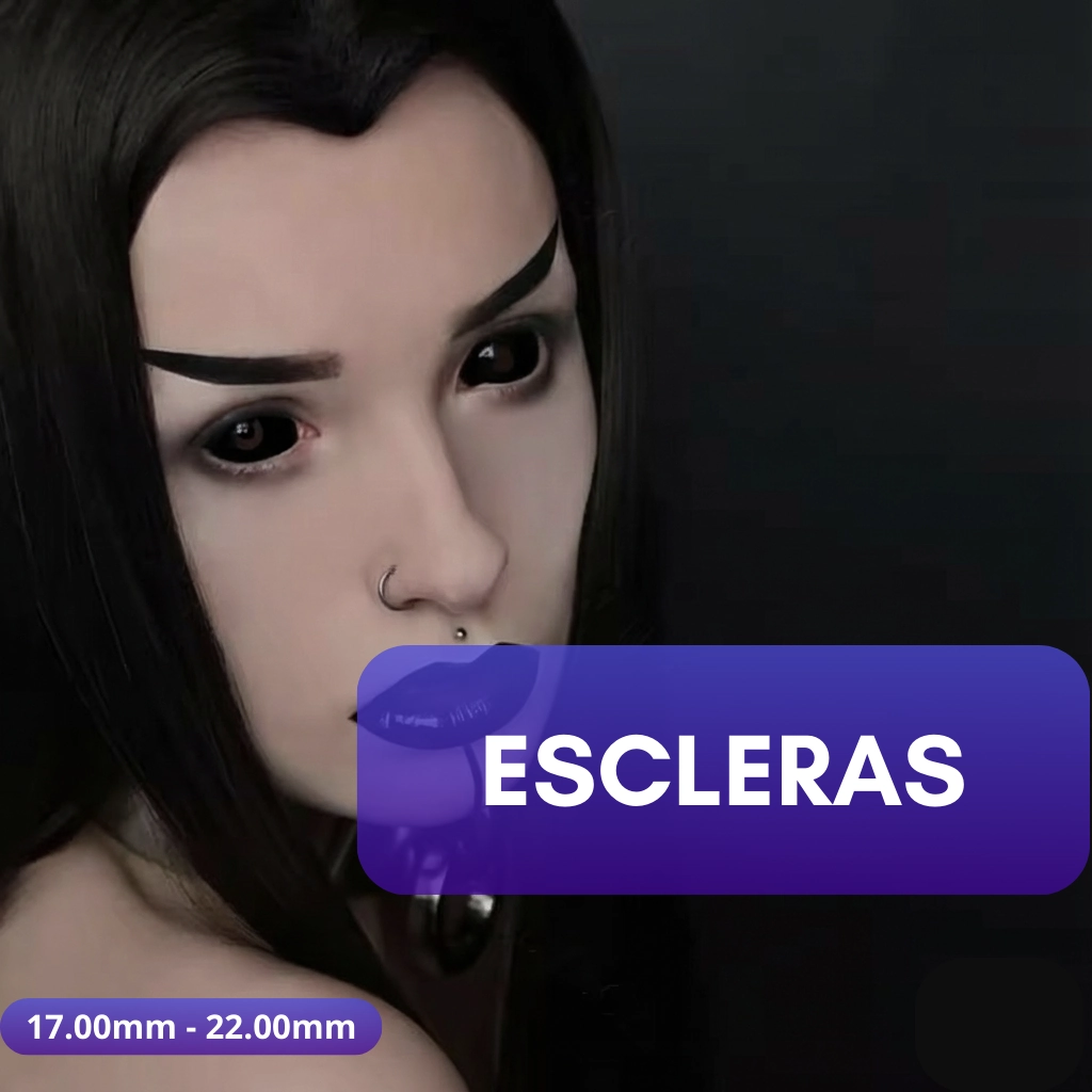 - Scleras: Lentes de Contacto que cubren casi todo o completamente tus ojos para lograr un efecto dramático y fascinante. Perfectos para transformaciones completas y looks intensos que llevan tu cosplay o disfraz a un siguiente nivel. También estos lentes requieren mayor expertiz en aplicarselos.